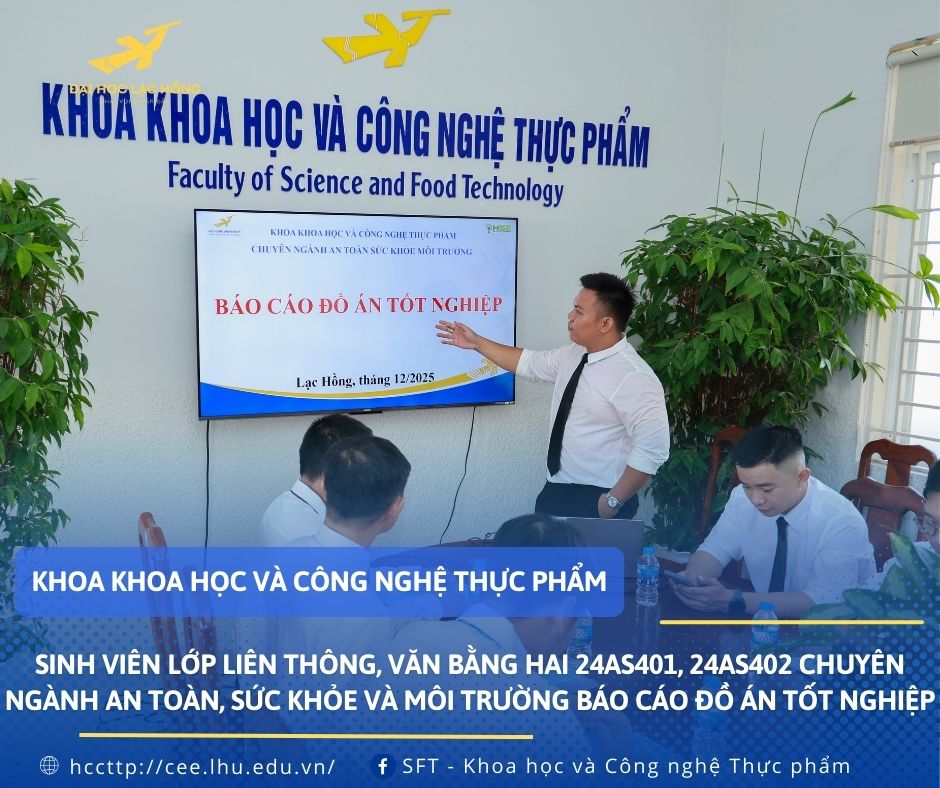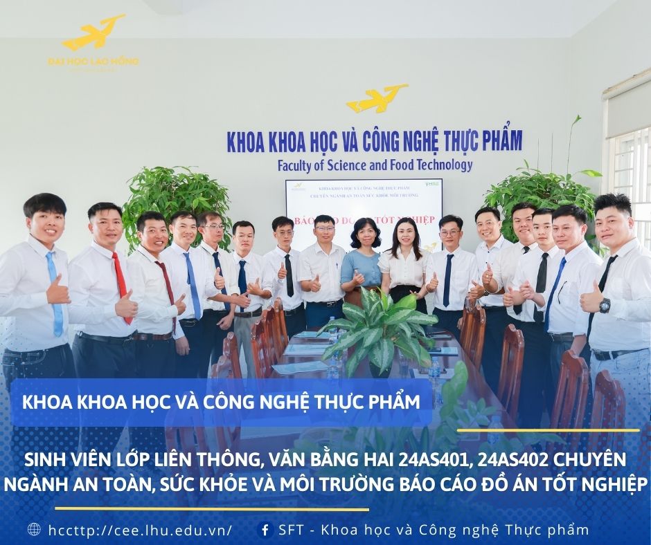 Khoa Khoa học và Công nghệ thực phẩm - Sinh viên các lớp 24AS401, 24AS402 chuyên ngành An toàn, Sức Khỏe và Môi trường báo cáo đồ án tốt nghiệp