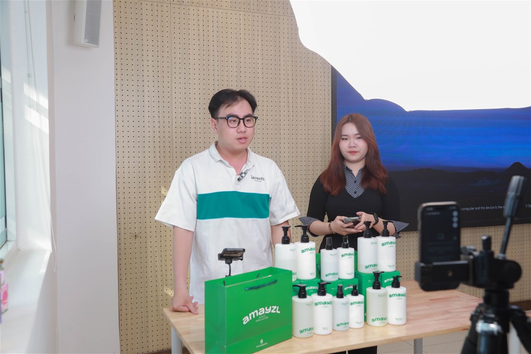 Sinh viên thực hành livestream thực tế cùng sản phẩm được tài trợ từ Doanh nghiệp