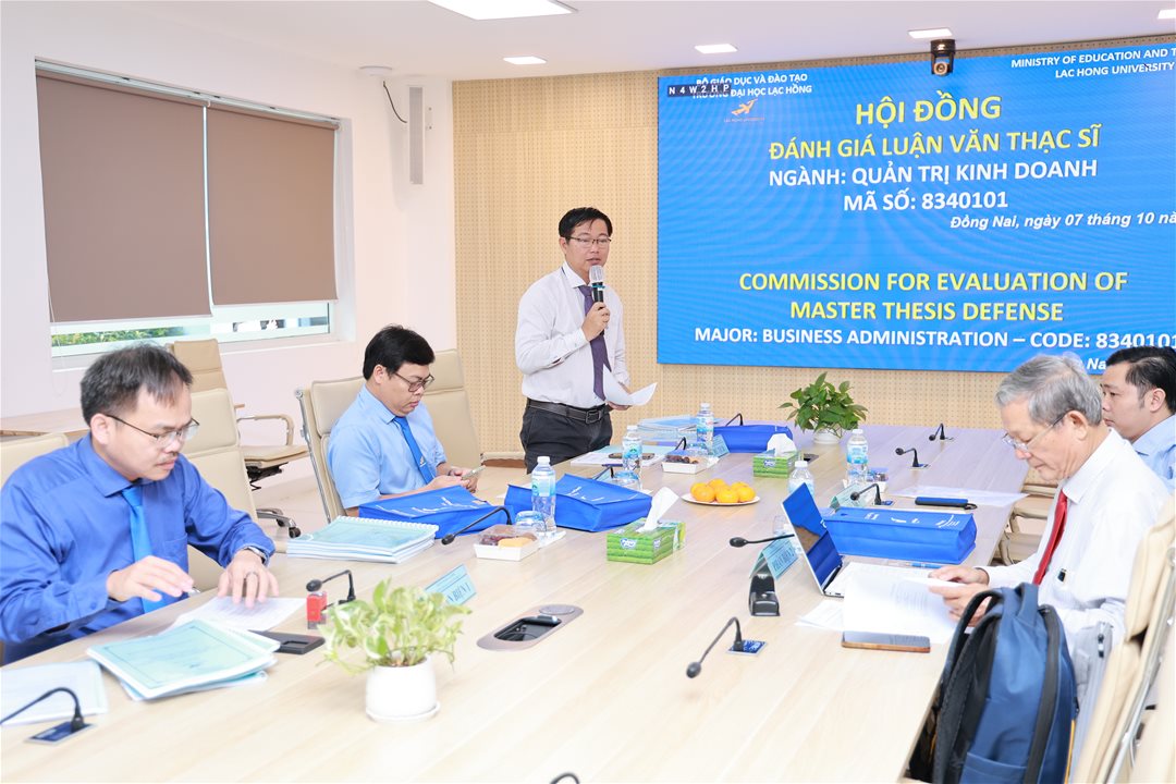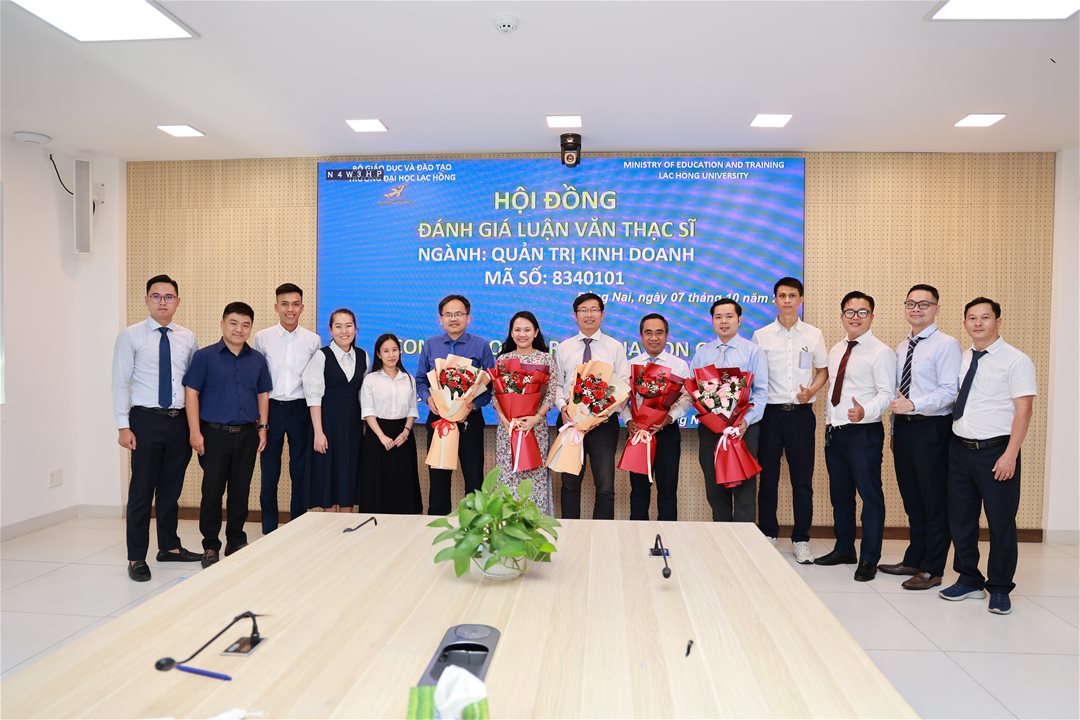Ngày 07 tháng 10 năm 2025, tại phòng họp cơ sở 1 của Trường Đại học Lạc Hồng (LHU), 10 học viên ngành Quản trị kinh doanh đã xuất sắc hoàn thành và bảo vệ luận văn thạc sĩ của mình. Buổi bảo vệ diễn ra trong không khí trang trọng và đầy tính học thuật, đánh dấu một bước ngoặt quan trọng trong hành trình học tập và nghiên cứu của các học viên.