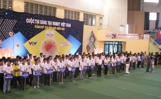 The opening ceremony of Robotcon Vietnam 2011, the southern regional qualifying round took place on April 5 at the Rach Mieu Sports House, Phu Nhuan district, Ho Chi Minh City.