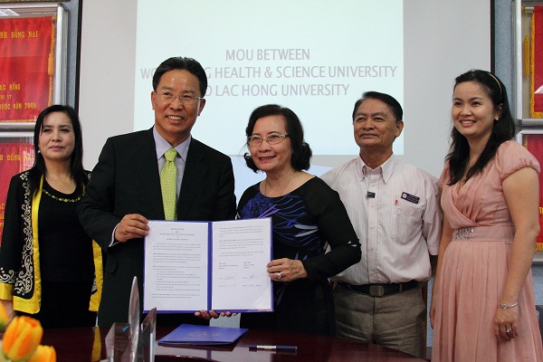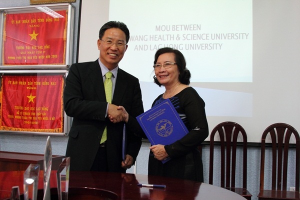 At the working visit, the both universities discussed cooperation opportunities in education and training. As a result, the two sides officially signed the Memorandum of Understanding (MOU) toward establishing cooperation in some fields: lecturer exchange, student exchange, diagonal program based on credit system and courses, educational cultural and scientific programs serving community, material exchange, mutual support in providing classes, dormitory and facilities serving student life. Signing MOU with Wonkwang Health Science University has affirmed confidence of universities in the region and in the world in Lac Hong University’s training competence. It is wished that the cooperation relation between the two sides will be stronger and gain many good results.
