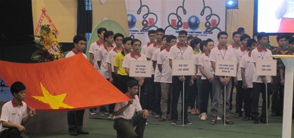 The regional qualifying round of Robocon Vietnam 2013 was kicked off at Rach Mieu Sports House, Hoa Phuong street, Phu Nhuan district, HCM City on April 5. Attending the opening ceremony was leaders of Vietnam Television, of the Ministry of Education and Training, of Toyota Vietnam Co., of universities and colleges in the South, robocon teams and a large number of supporters. The opening ceremony and competitions will be broadcast live on VTV 9.
