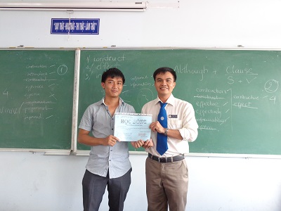 At the end of the club meeting, NGUYEN THUONG THIEN from class 09DC111, from Electrical and Electronics Engineering Department, excellently won a scholarship from Lac Hong University's Informatics and Foreign Language Center.