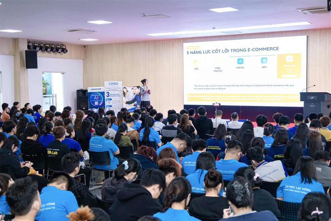 From Lac Hong University, the event welcomed Dr. Huynh Cao Tuan – Vice Rector, along with leadership representatives from the Faculty of Information Technology, including M.Sc. Nguyen Minh Son – Vice Dean, and M.Sc. Bui Thi Thu Trang – Head of the E-commerce Department, alongside numerous faculty members and students.